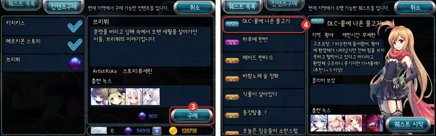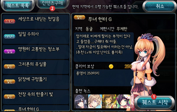 - 퀘스트 목록은 메인 퀘스트나 특정 퀘스트를 클리어 했을 시 새로운 퀘스트가 갱신됩니다.