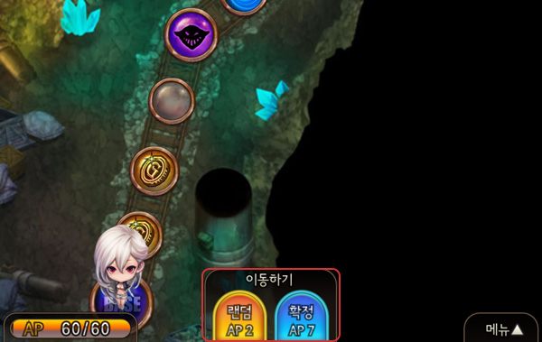 3. 확정이동을 선택할 시 원하는 칸 만큼 이동할 수 있지만 AP가 많이 소모됩니다.