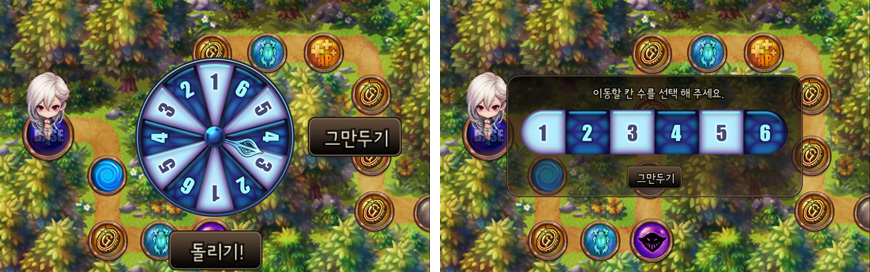 2. 랜덤이동을 선택할 시 룰렛이 돌아가며 선택된 숫자만큼 이동합니다.
